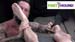 his bare soles and toes with his mouth. He massages one foot while
